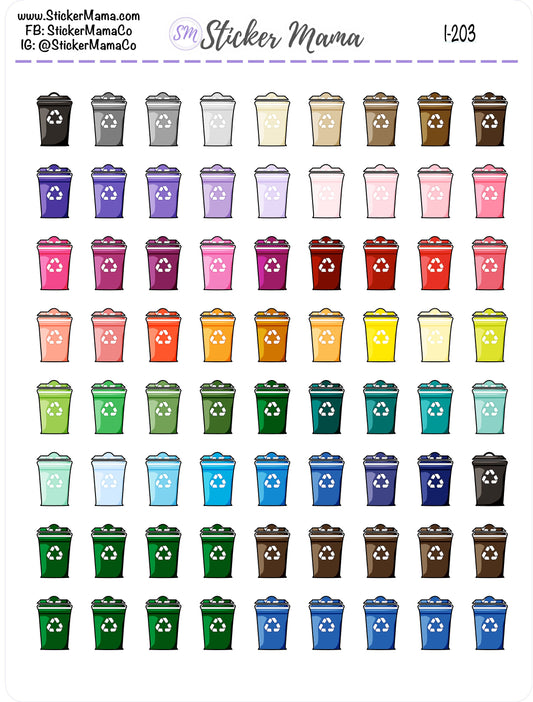 TRASH-CAN PLANNER Stickers I-203 - Trash Stickers - Recycle - Stickers for Trash