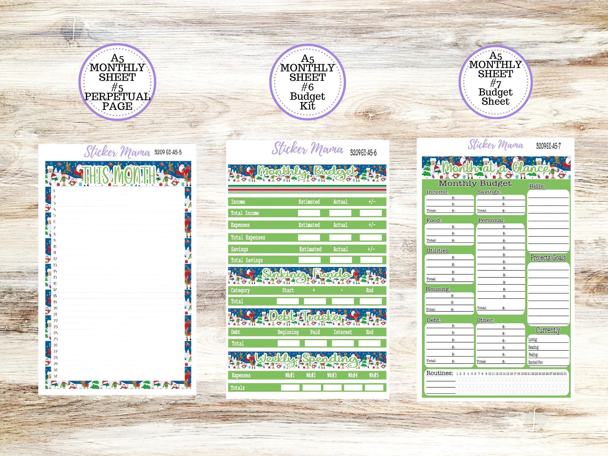 ERIN CONDRE Monthly Kit-3209 || A5 || Jolly Pines Stickers || - ec December Monthly Kit - Monthly Planner Kits - Monthly Budget