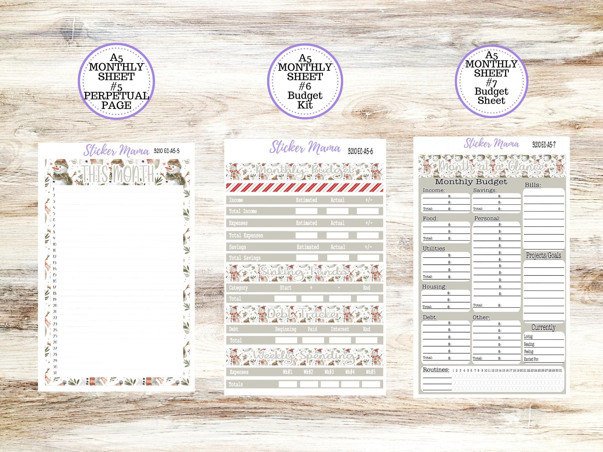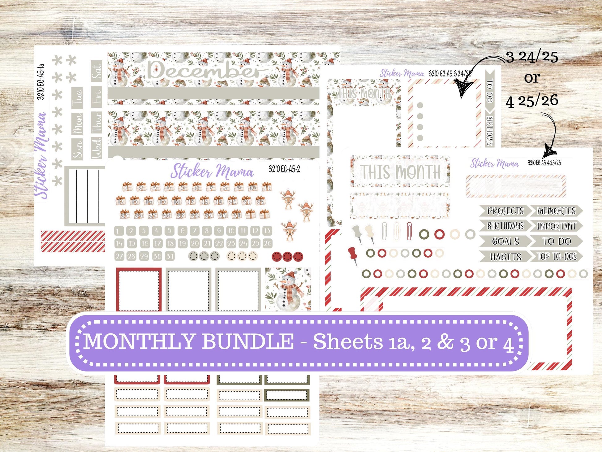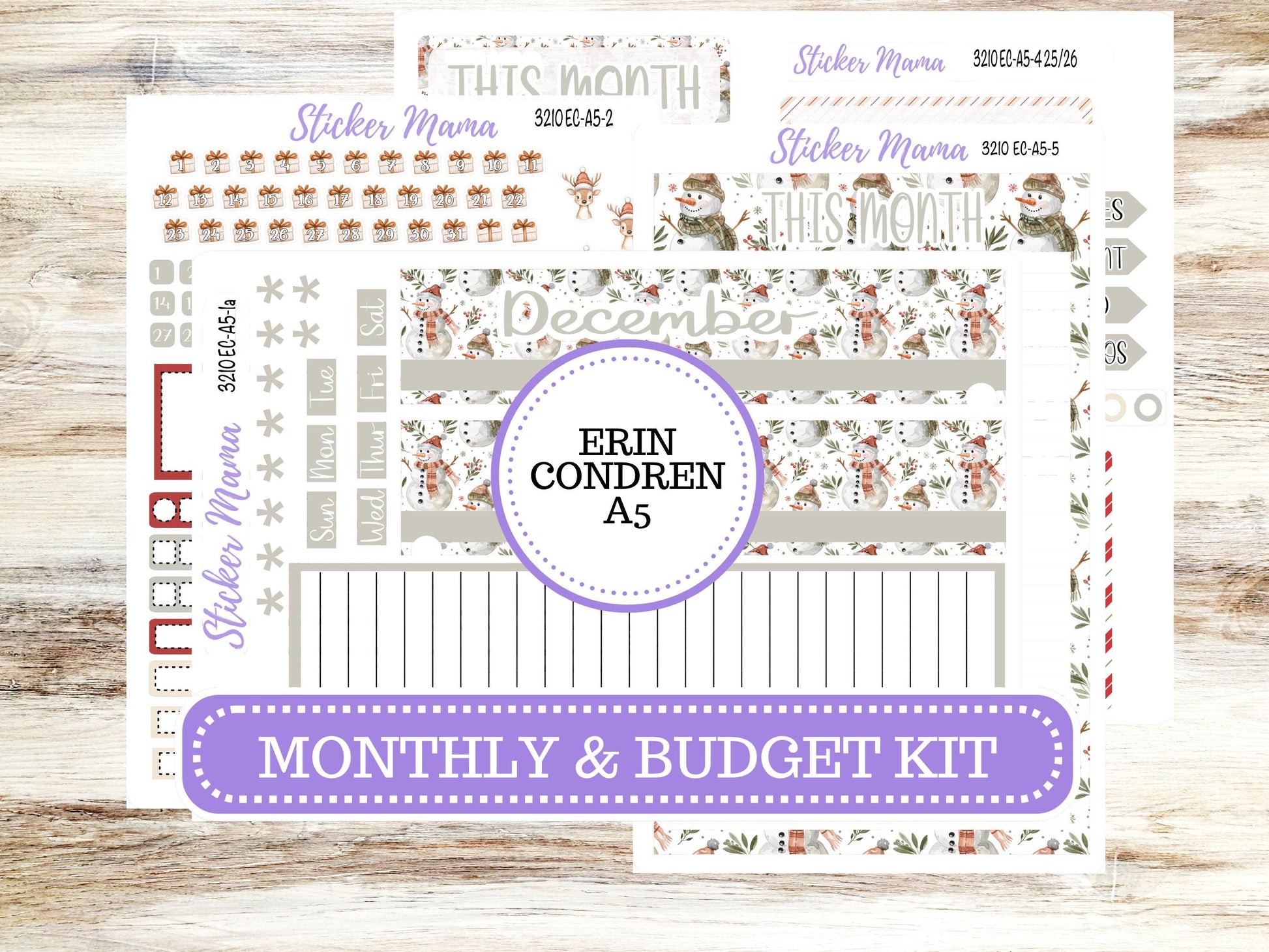 ERIN CONDRE Monthly Kit-3210 || A5 || Frosty Friends Stickers || - ec December Monthly Kit - Monthly Planner Kits - Monthly Budget