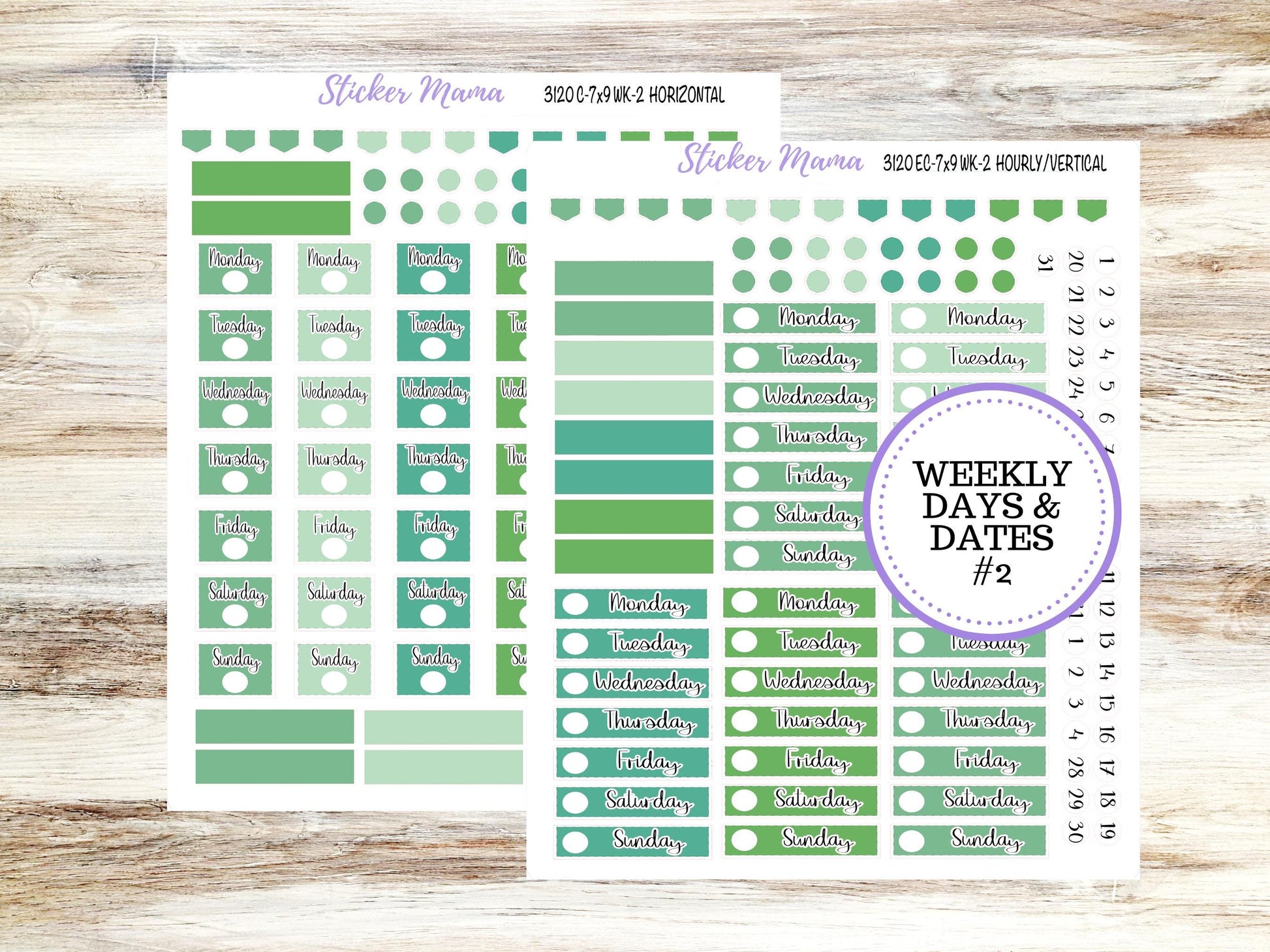 WK2 (Hourly/Vertical): Days of the week and dates for hourly and vertical planners