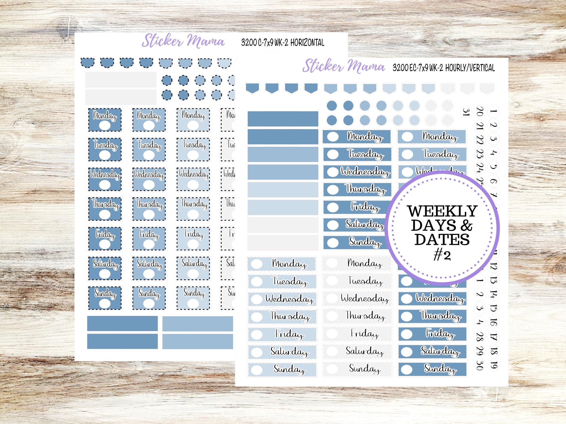 WK2 (Hourly/Vertical): Days of the week and dates for hourly and vertical planners