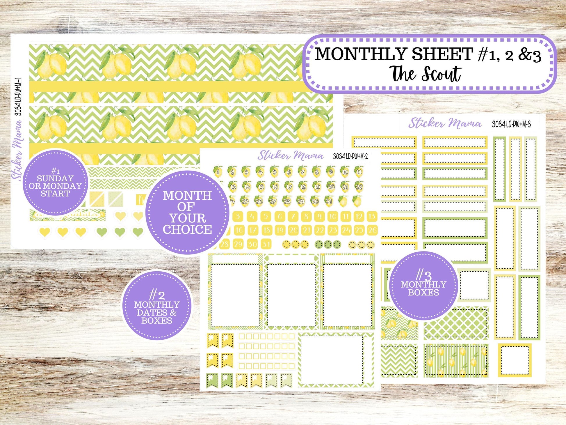 This monthly kit is customizable for the month of your choice. If you are purchasing Sheet 1 (the Monthly Sheet), please include the month you’d like printed. If no month is specified, the sheet will be shipped without a month.