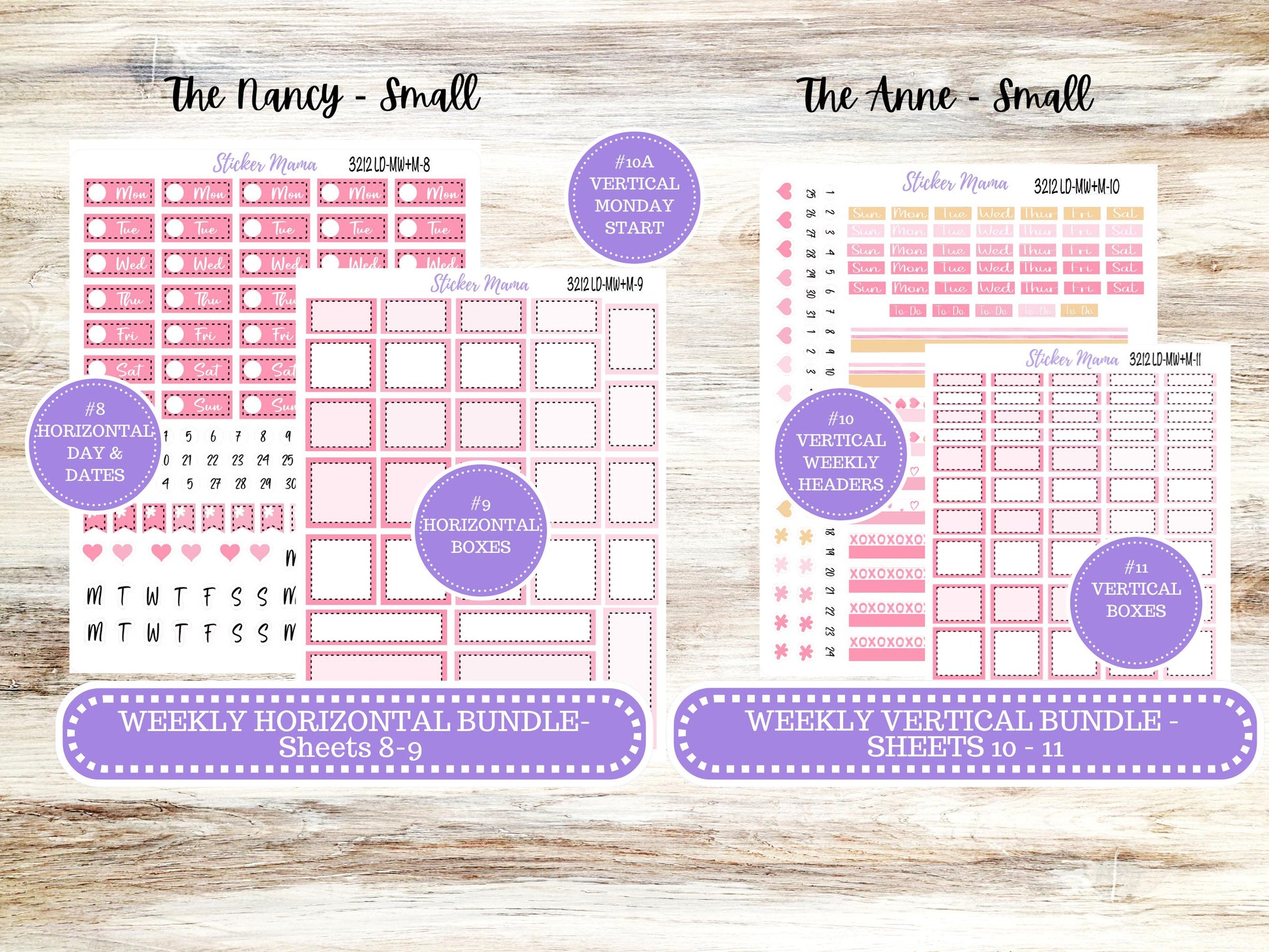 This sticker kit is designed for small "The Nancy & Anne" (also known as the “Mini Horizontal/Vertical Week + Month" Laurel Denise planner).