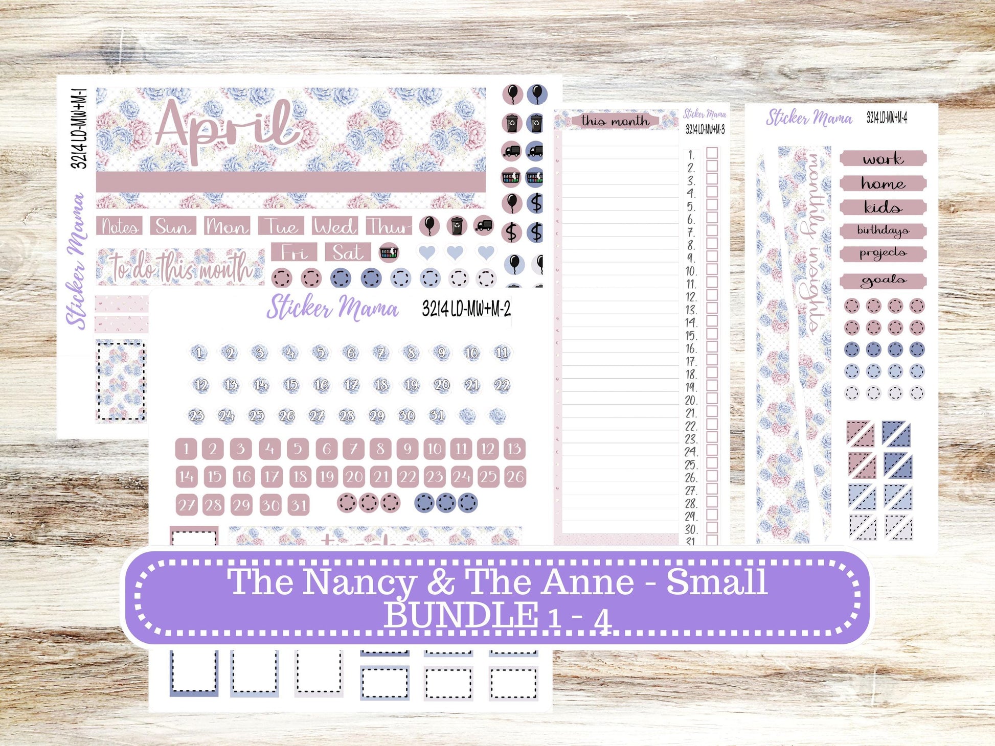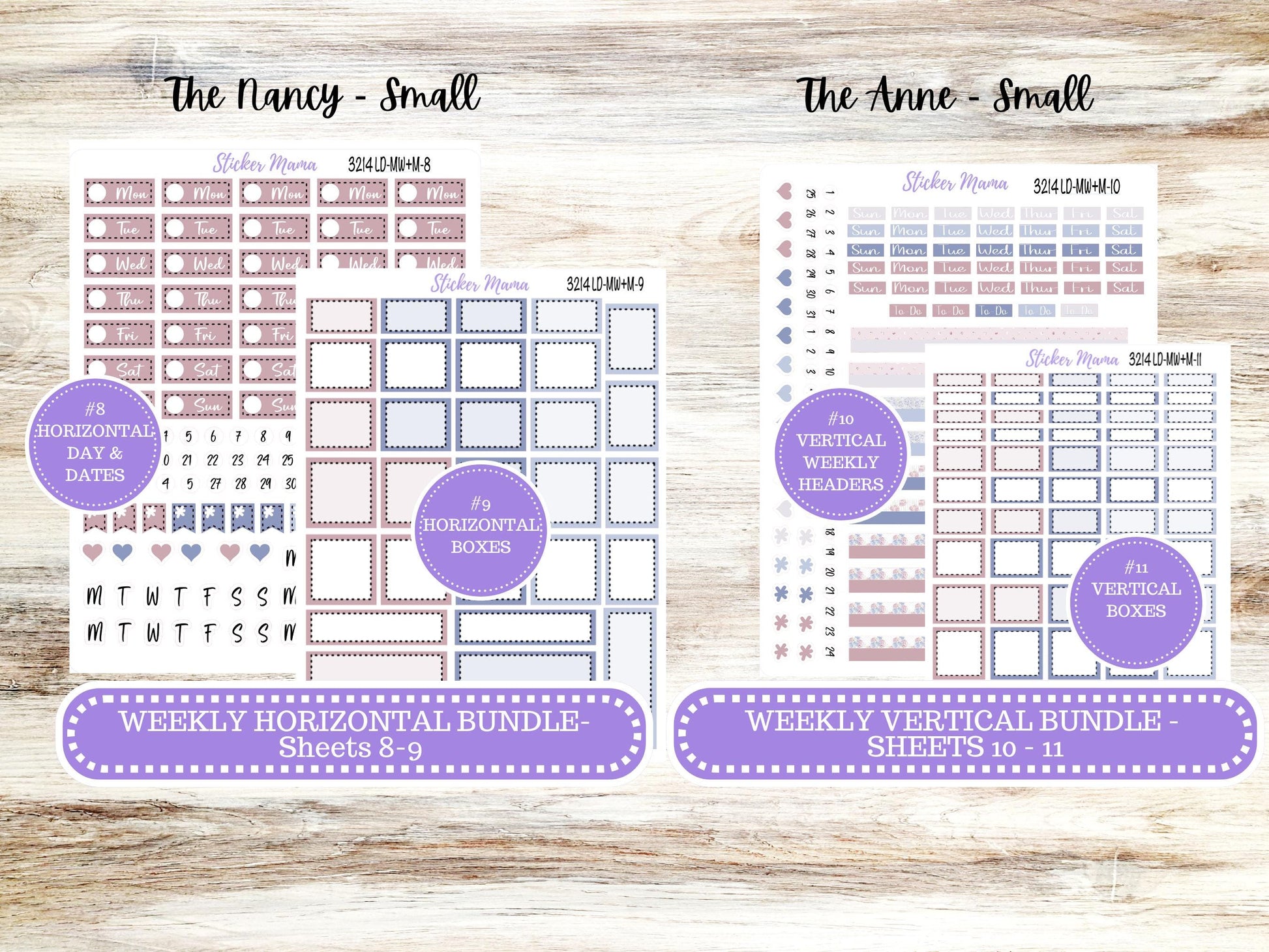 This sticker kit is designed for small "The Nancy & Anne" (also known as the “Mini Horizontal/Vertical Week + Month" Laurel Denise planner).