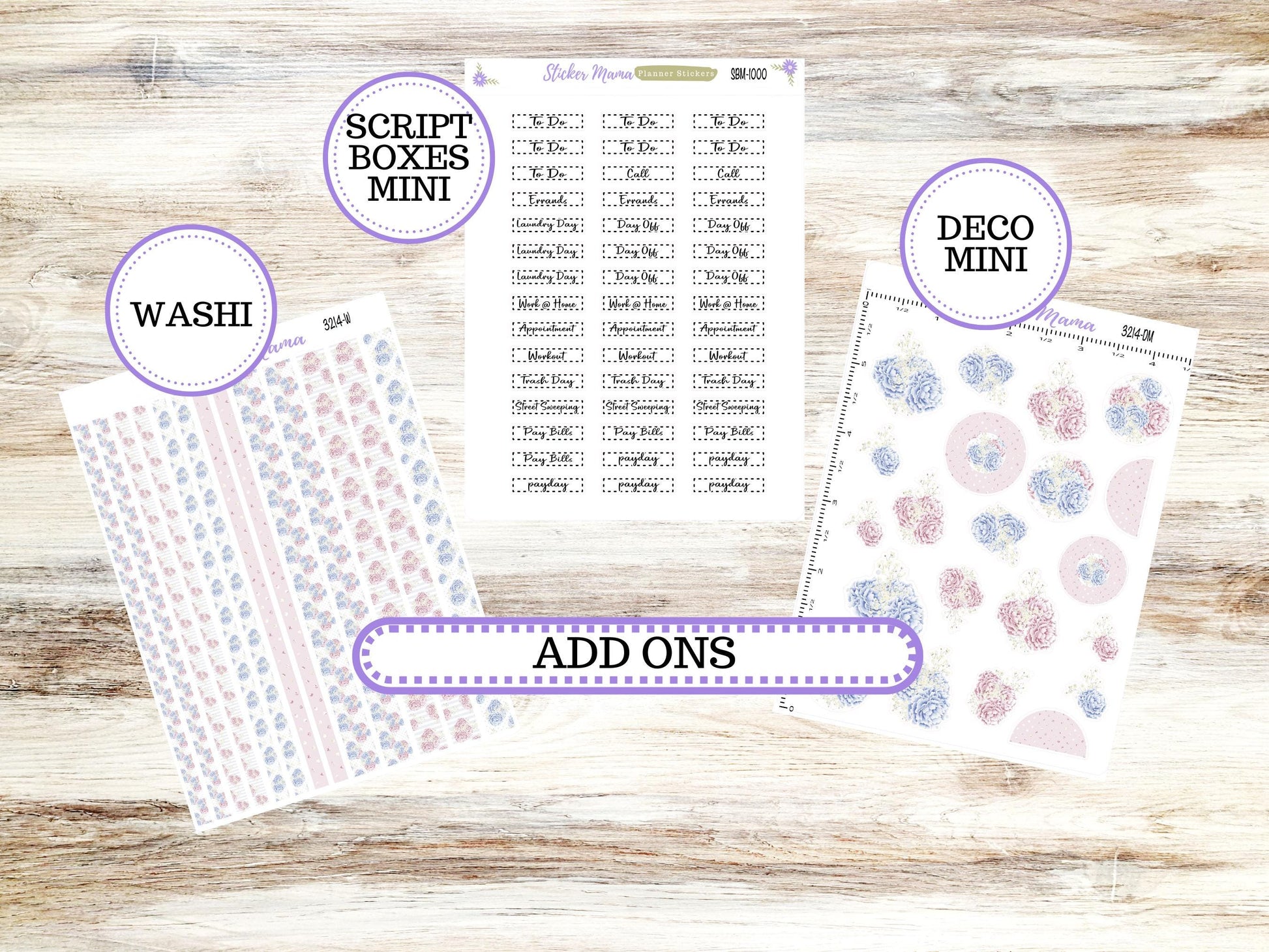 Planner Script Boxes Mini - 1.0" wide