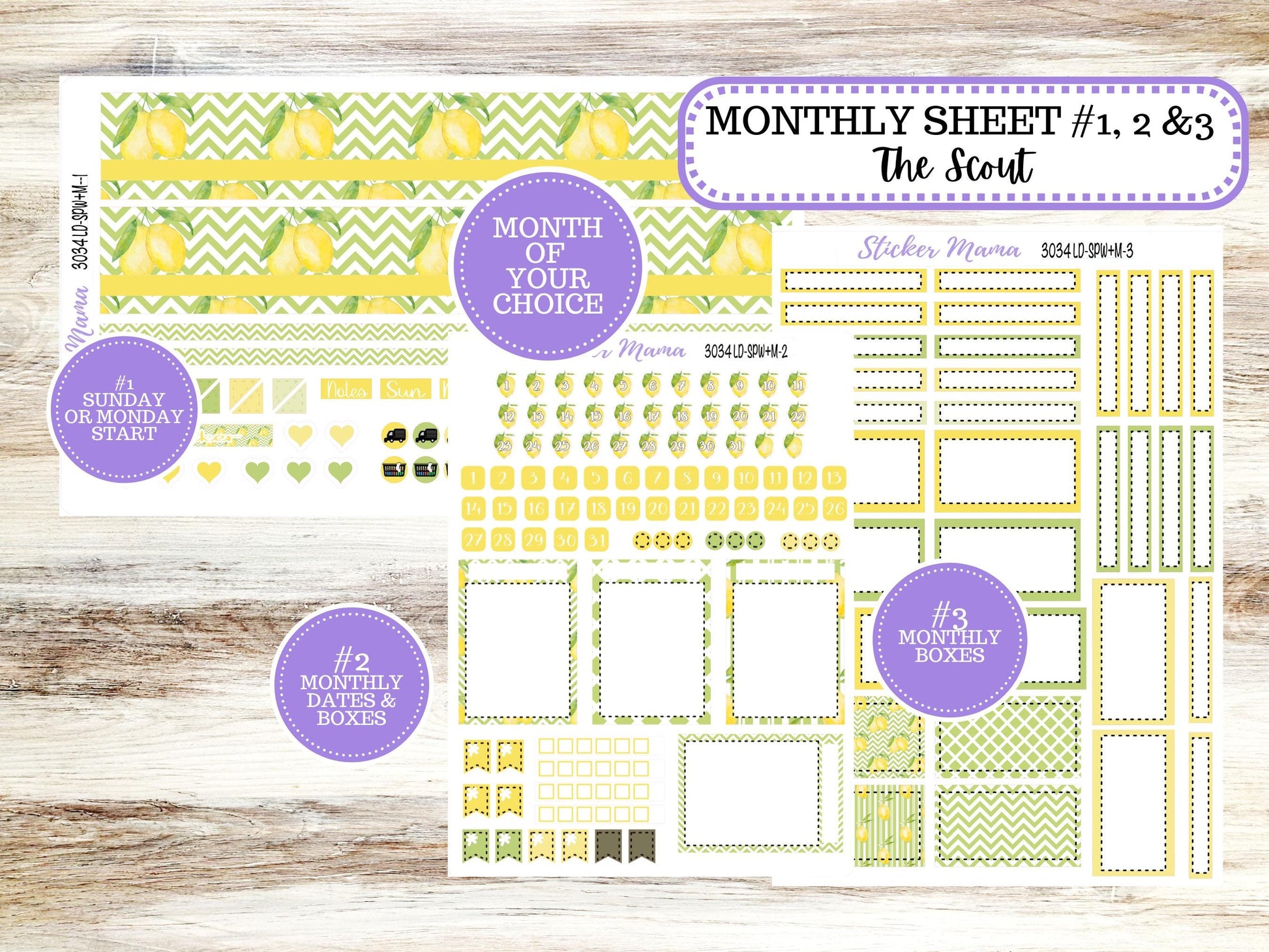 This monthly kit is customizable for the month of your choice. If you are purchasing Sheet 1 (the Monthly Sheet), please include the month you’d like printed. If no month is specified, the sheet will be shipped without a month.