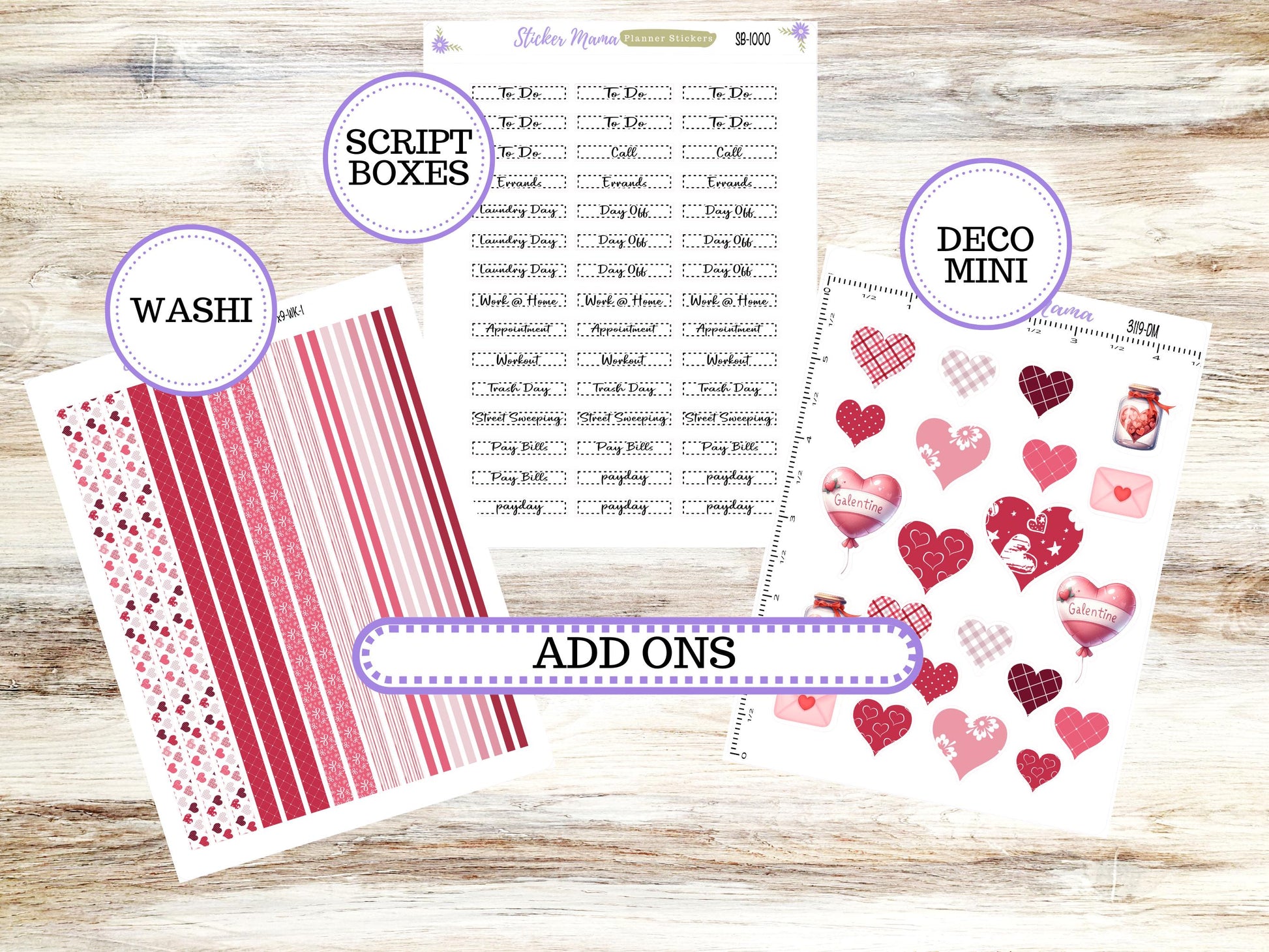 Planner Script Boxes - 1.5" wide