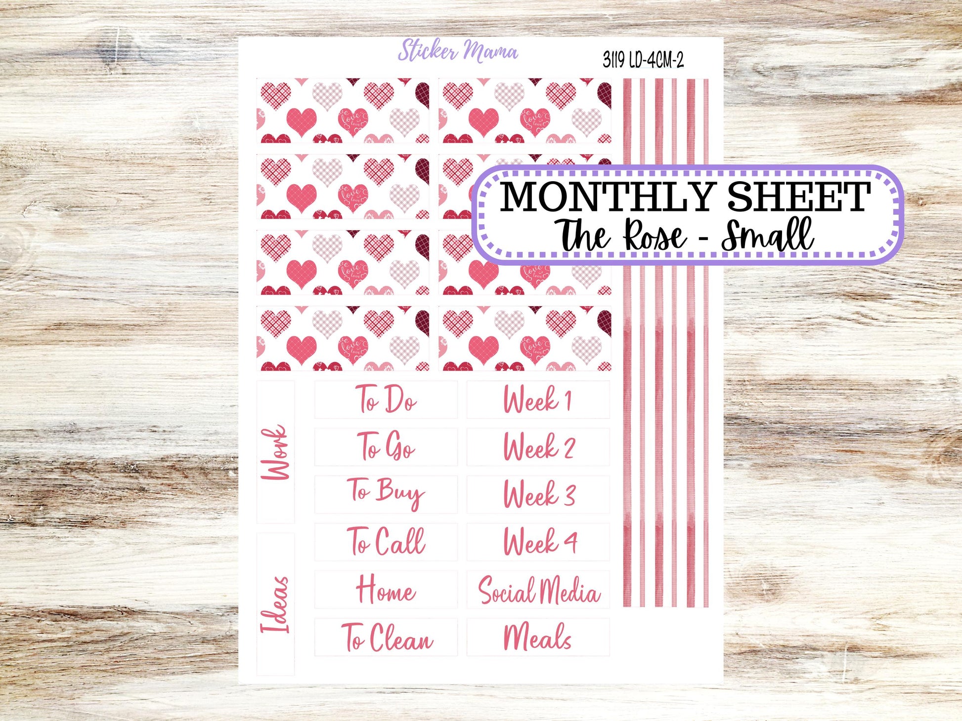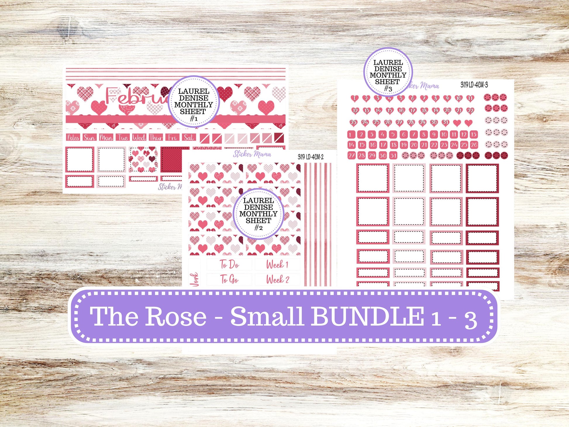 LD "Th Rose" Small || 4 COLUMN Mini (formerly the project mini) Size Planner Kit #3119 || February || Project Stickers || 10-25