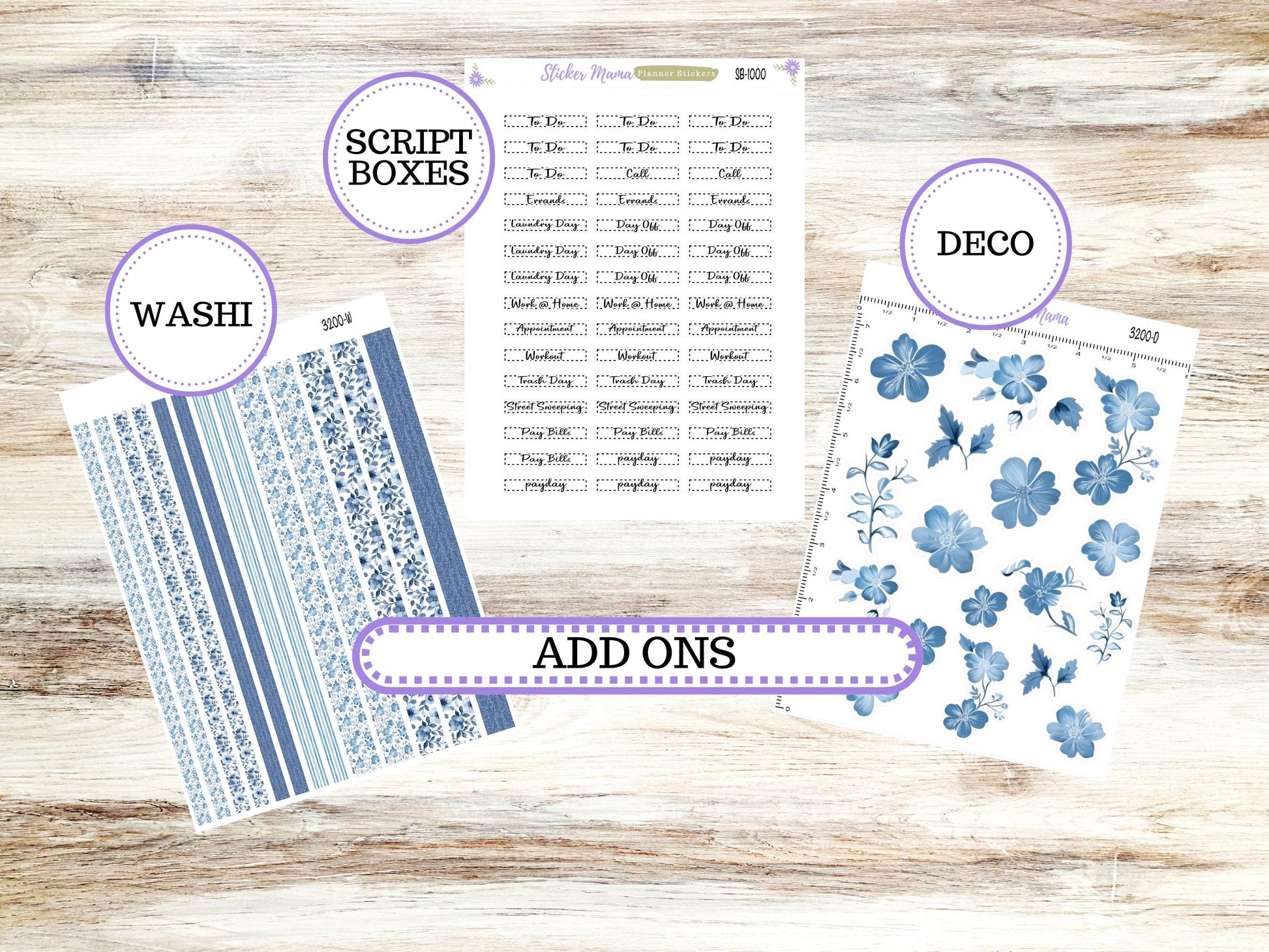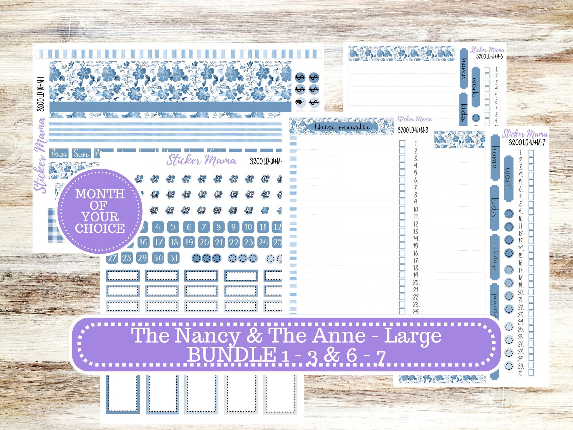 LD “The Nancy & Anne” Large || Week + Month PLANNER Monthly Kit #3200 Blue Blossom || Horizontal Vertical Kit || Choose Your Month || 12-25
