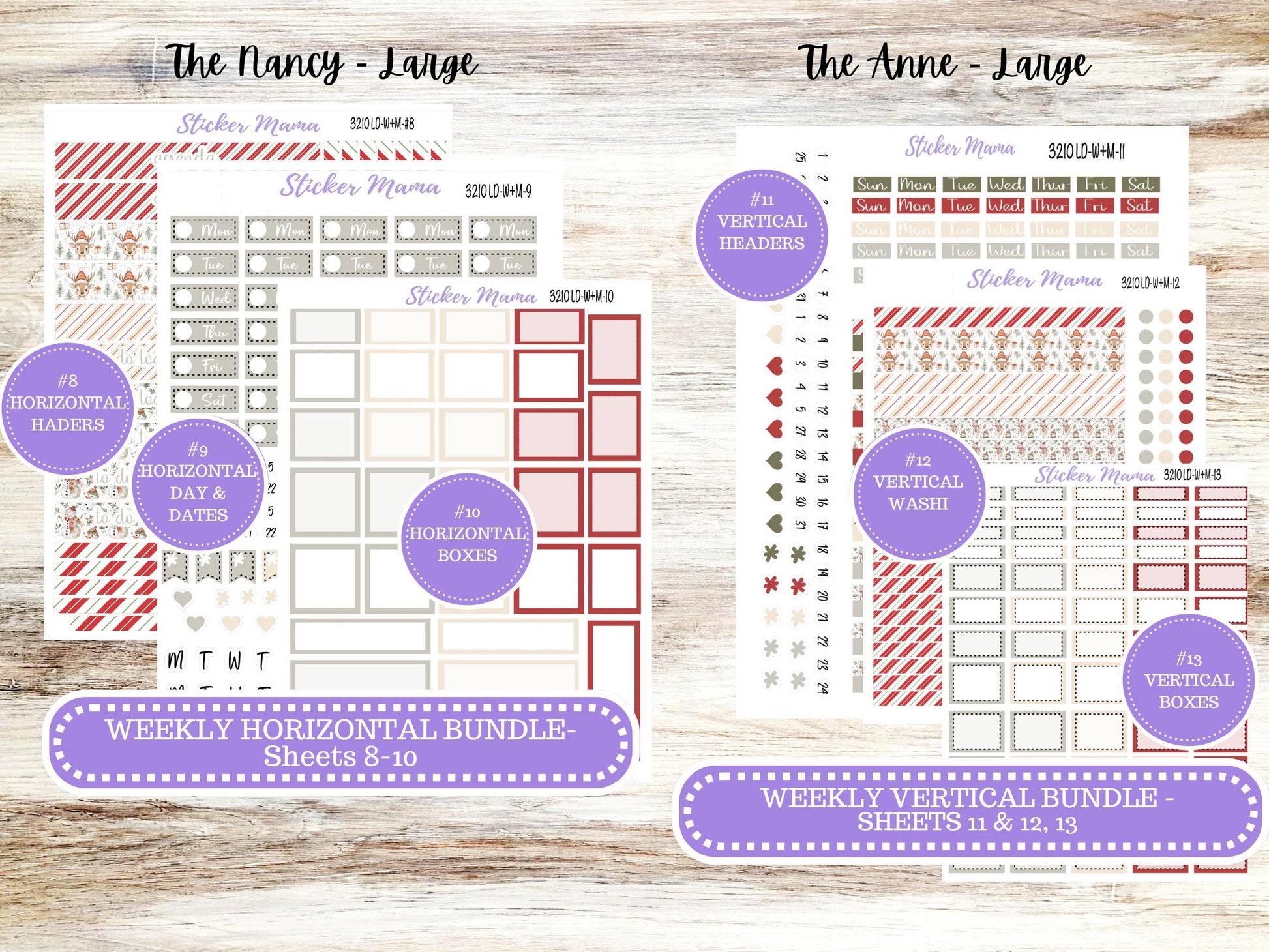 This sticker kit is designed for large "The Nancy & Anne" (also known as the “Full Size Horizontal/Vertical Week + Month" Laurel Denise planner).