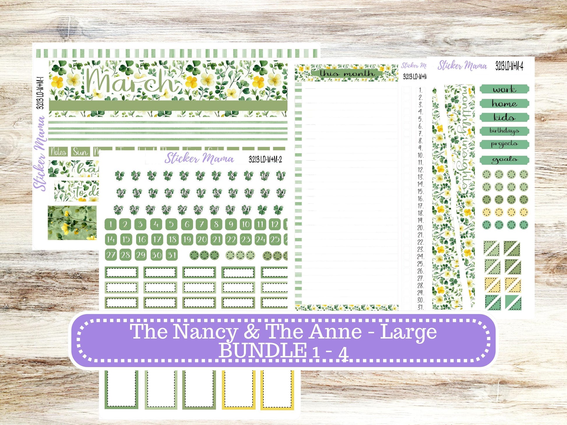 LD “The Nancy & Anne” Large || Week + Month PLANNER Monthly Kit #3213 || Horizontal Vertical Kit || March Lucky Blossom || 10-25