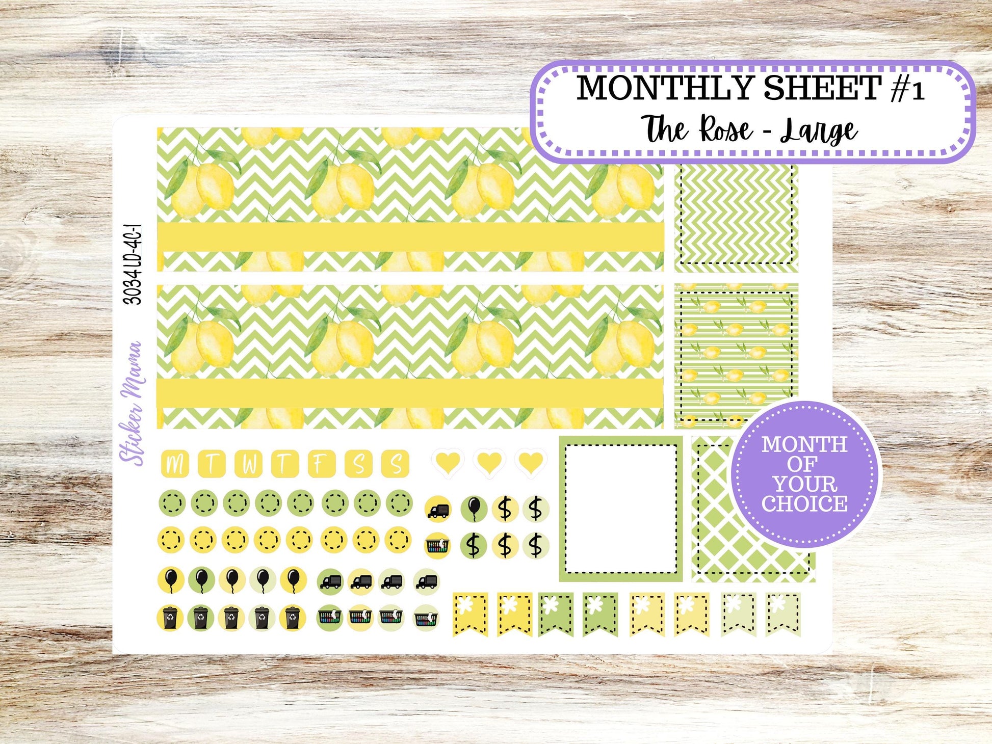 This monthly kit is customizable for the month of your choice. If you are purchasing Sheet 1 (the Monthly Sheet), please include the month you’d like printed. If no month is specified, the sheet will be shipped without a month.