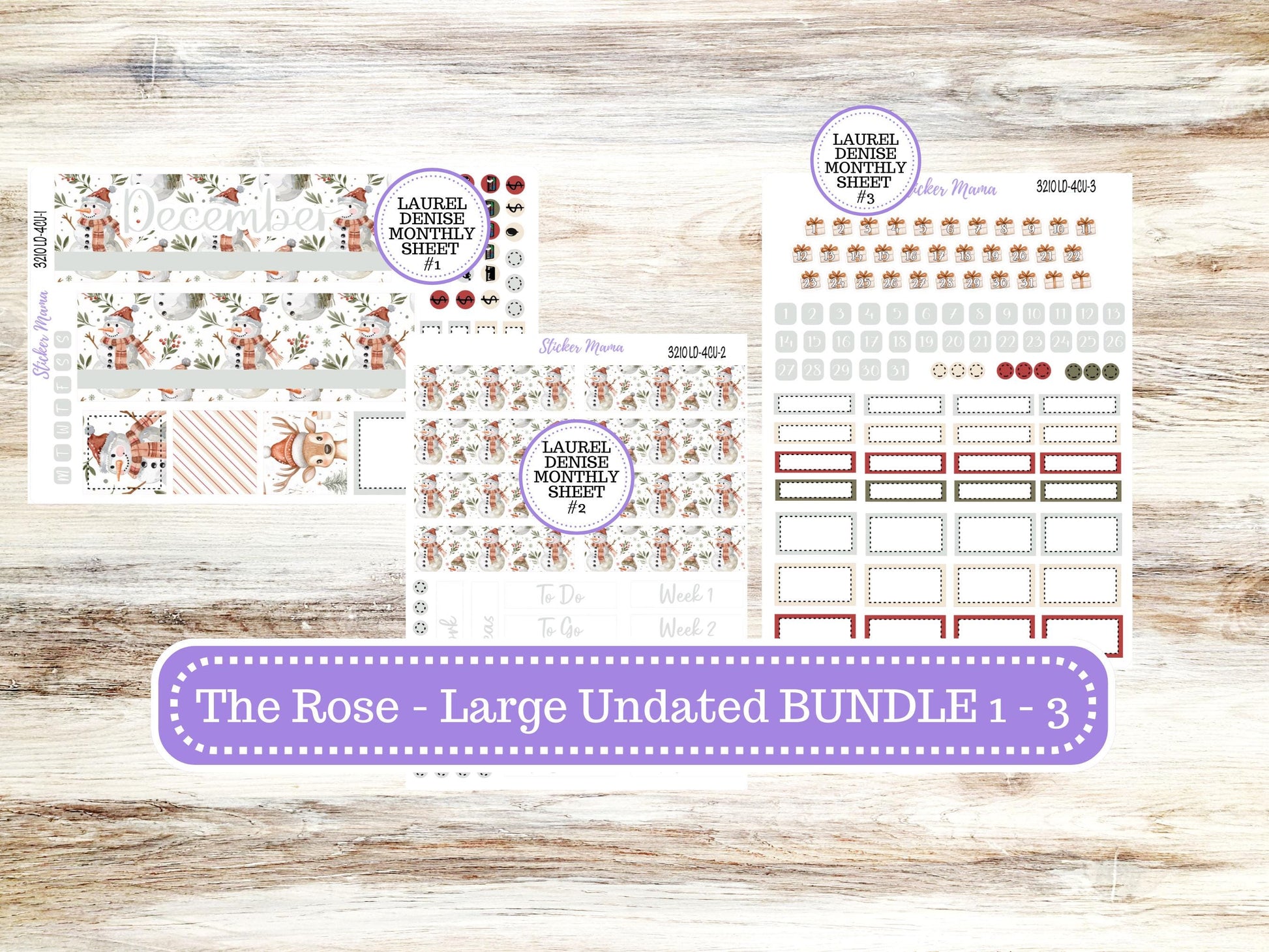 LD "The Rose" - Large Undated Sewn || 4 COLUMN Undated (formerly project undated). Planner Kit #3210 || Frosty Friends || 9-25