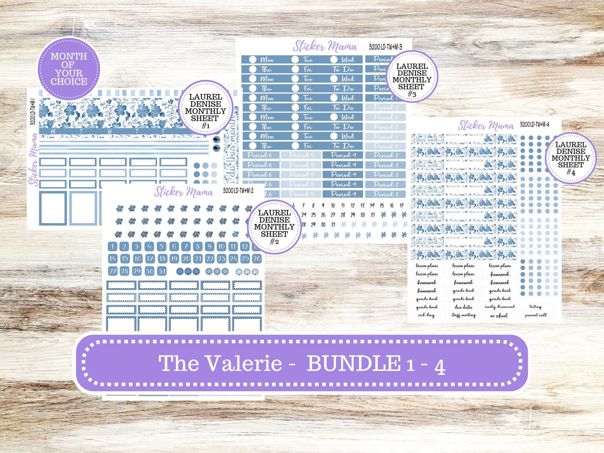 LD "The Valerie" || TEACHER Week + Month Planner Kit #3200 || Choose Your Month Blue Blossom || Laurel Denise Teacher Planner | 12-25