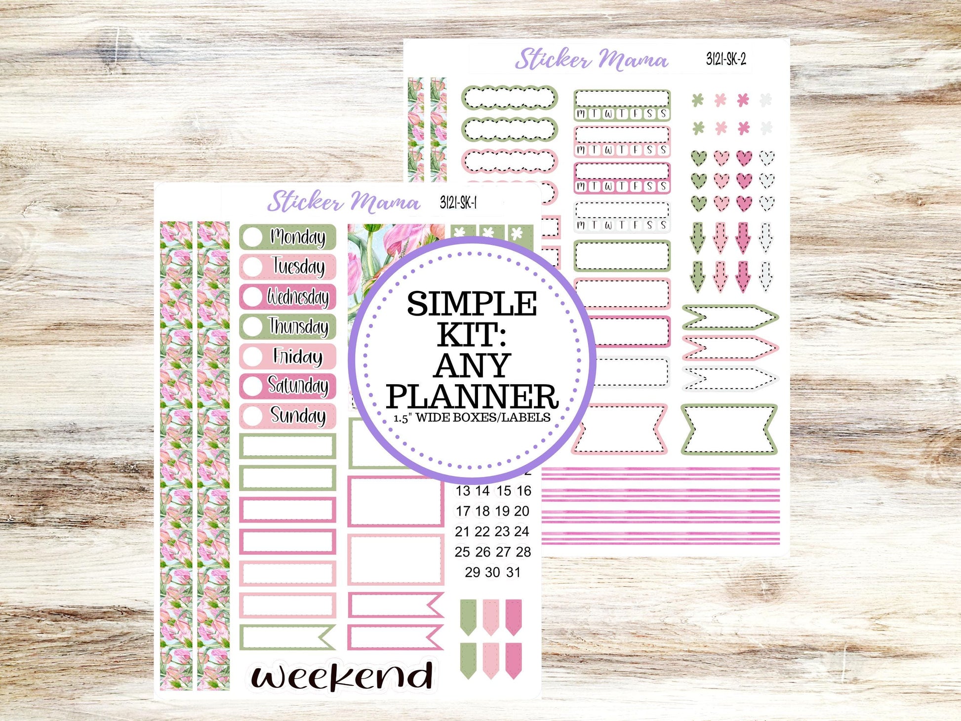 Item Details: Simple Sticker Kit - This kit is designed to cater to all planner types and sizes with the standard 1.5" inch wide