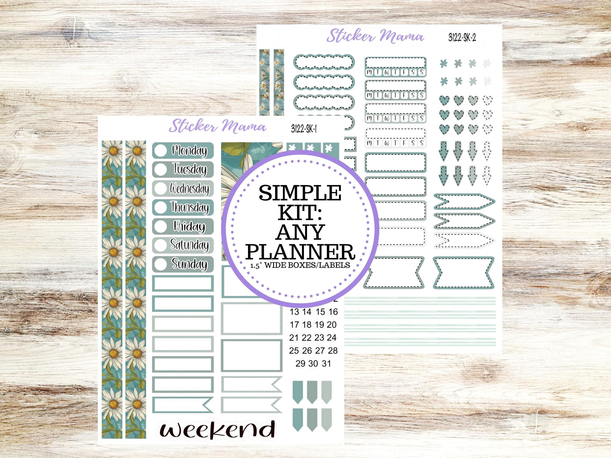 Item Details: Simple Sticker Kit - This kit is designed to cater to all planner types and sizes with the standard 1.5" inch wide