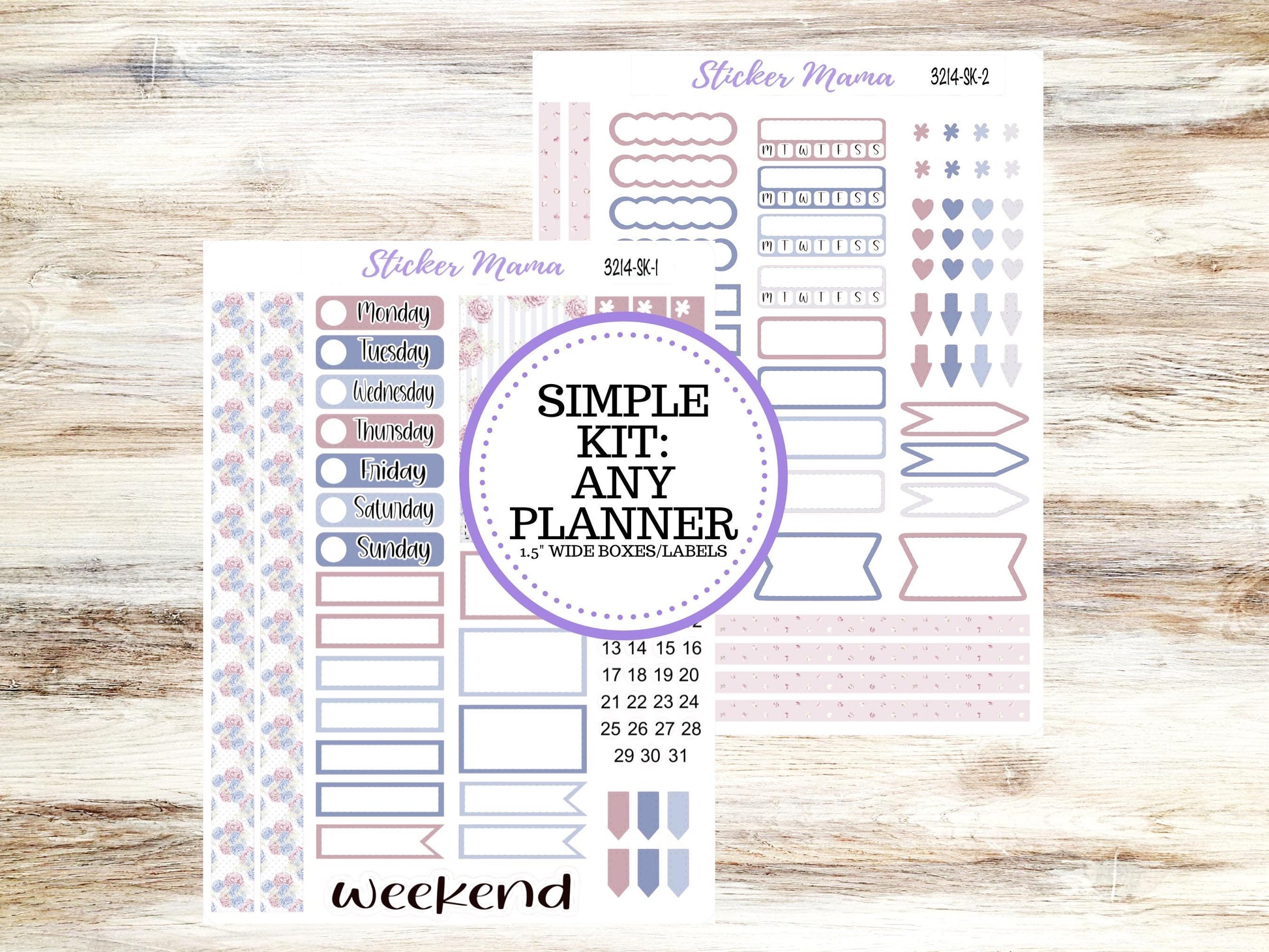Item Details: Simple Sticker Kit - This kit is designed to cater to all planner types and sizes with the standard 1.5" inch wide