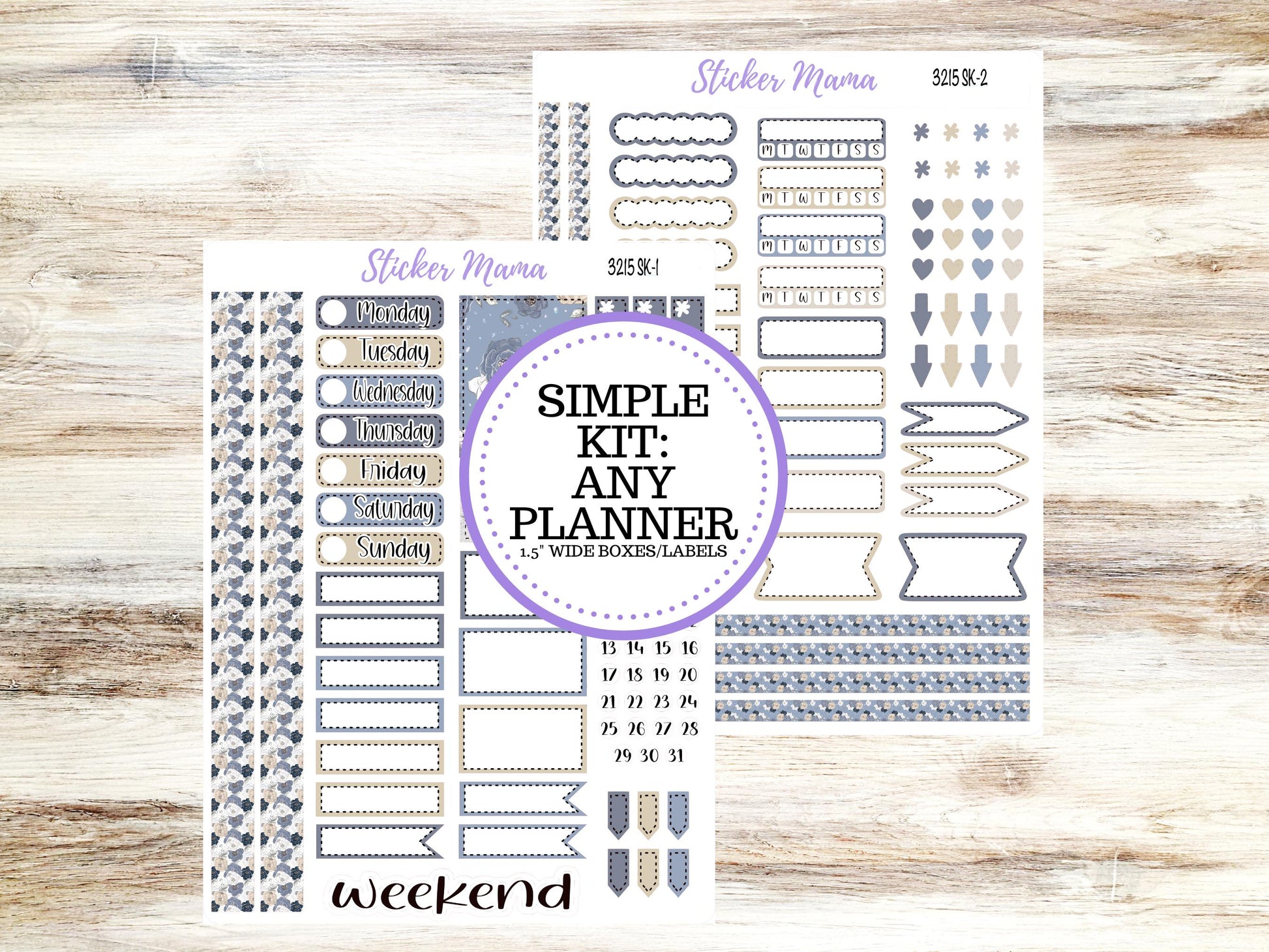 Item Details: Simple Sticker Kit - This kit is designed to cater to all planner types and sizes with the standard 1.5" inch wide
